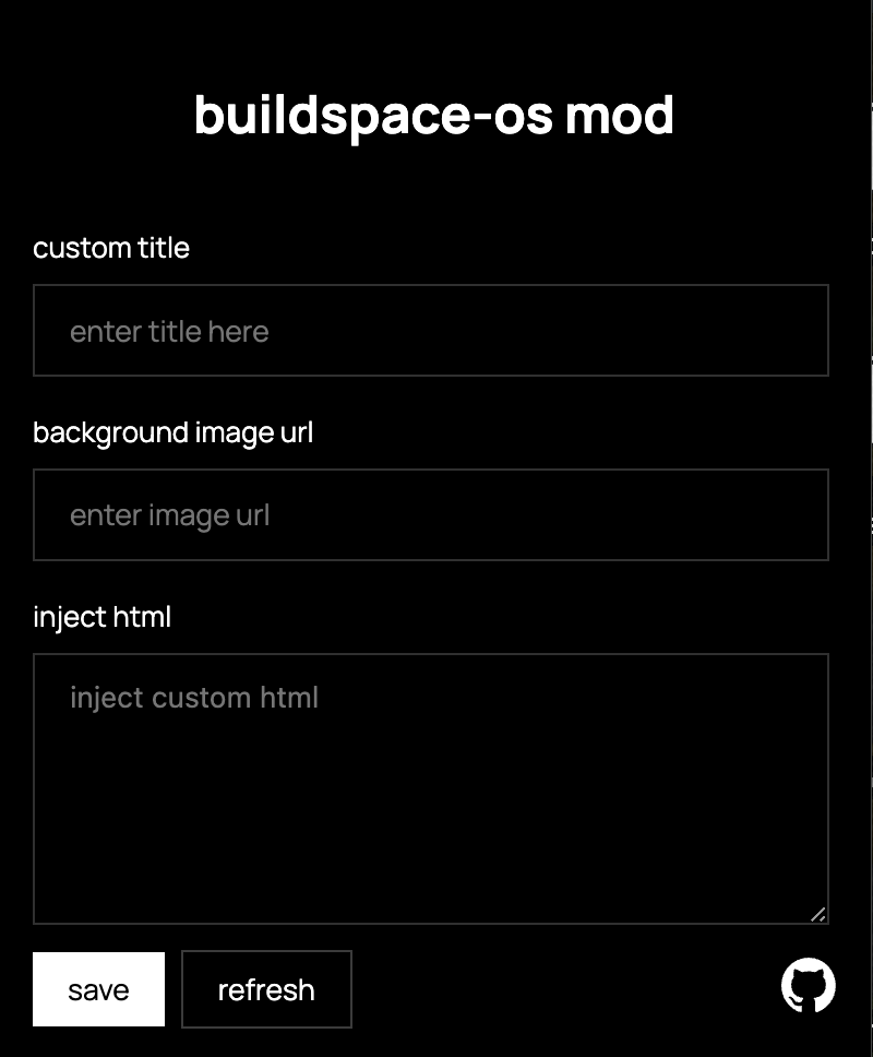 ...but, I wanted to change the background video with my wallpaper. So, I looked into the code and found out that it was rendering the buildspace home page in an iframe. So, I thought, why not just inject my own css and js into the iframe to change the background video.